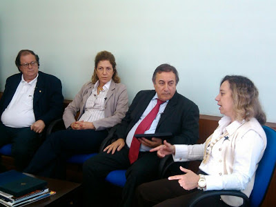 Os dirigentes, num bate-papo descontraído, trataram de diversos assuntos de interesse da categoria, entre eles a forma de organização dos servidores legislativos em todo o País, o andamento das campanhas salariais tanto na Assembleia Legislativa como no Tribunal de Contas. Falaram também a respeito do trabalho que as entidades vêm realizando em defesa dos aposentados e pensionistas.